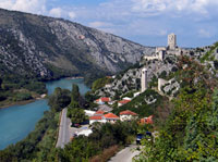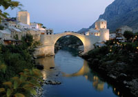 Mostar Old Bridge, in the Old Town in the very centre of Mostar, was built in 1566, by the Ottoman architect, Mimar Hajrudin, who erected this stone bridge in what was then just a small Turkish outpost in southern Bosnia and Herzegovina. The bridge spans the emerald green waters of the Neretva River and came to be known as "Stari Most", or Old Bridge. The outpost grew into a city and was eventually named after the bridge - Mostar, or "keeper of the bridge." Today, this bridge is included in the UNESCO World Heritage List. (Read more on : www.unesco.org)